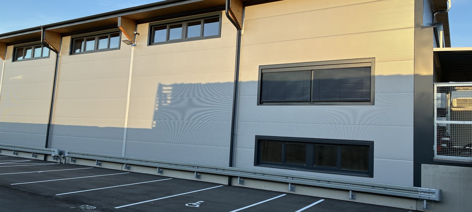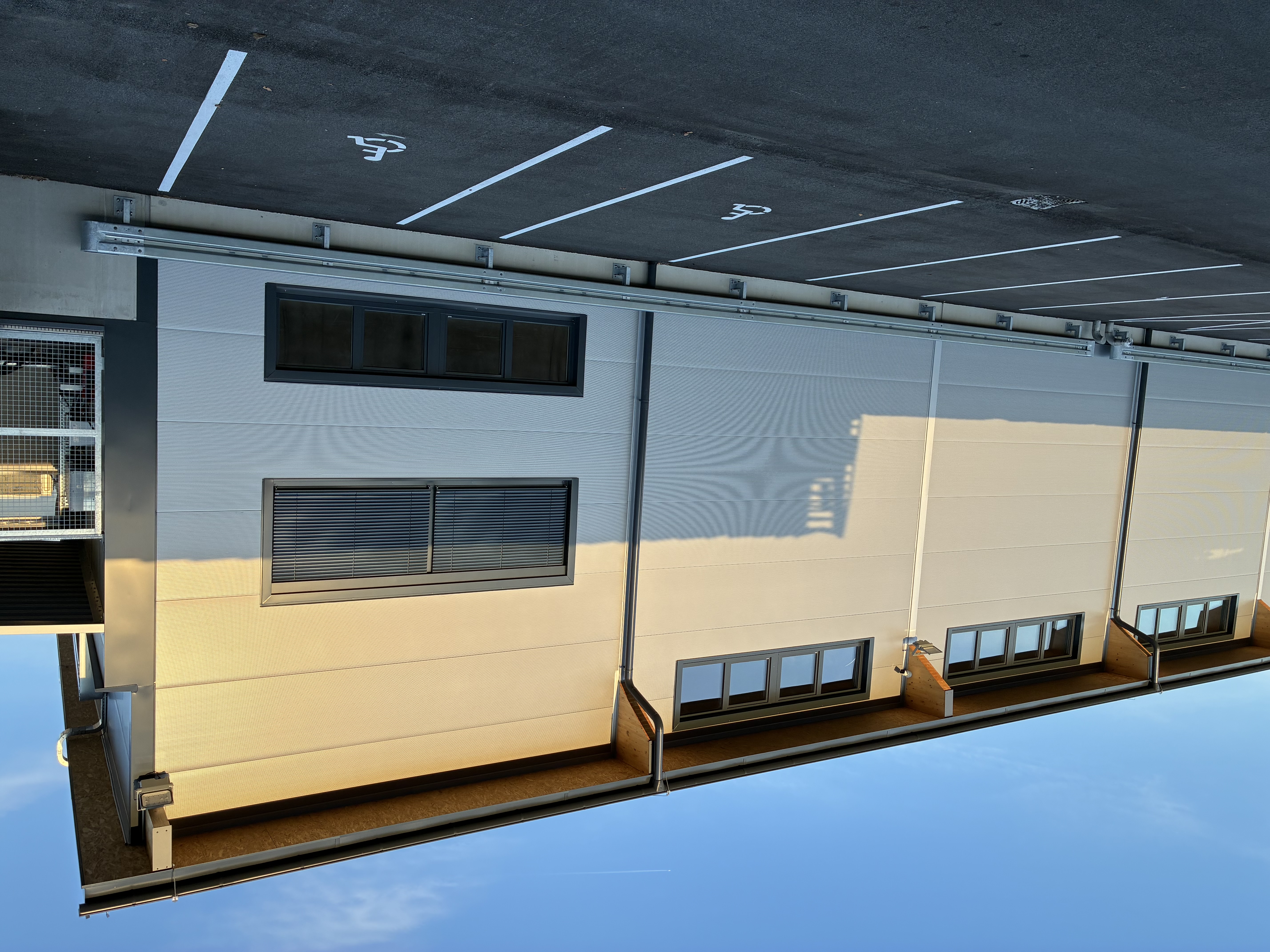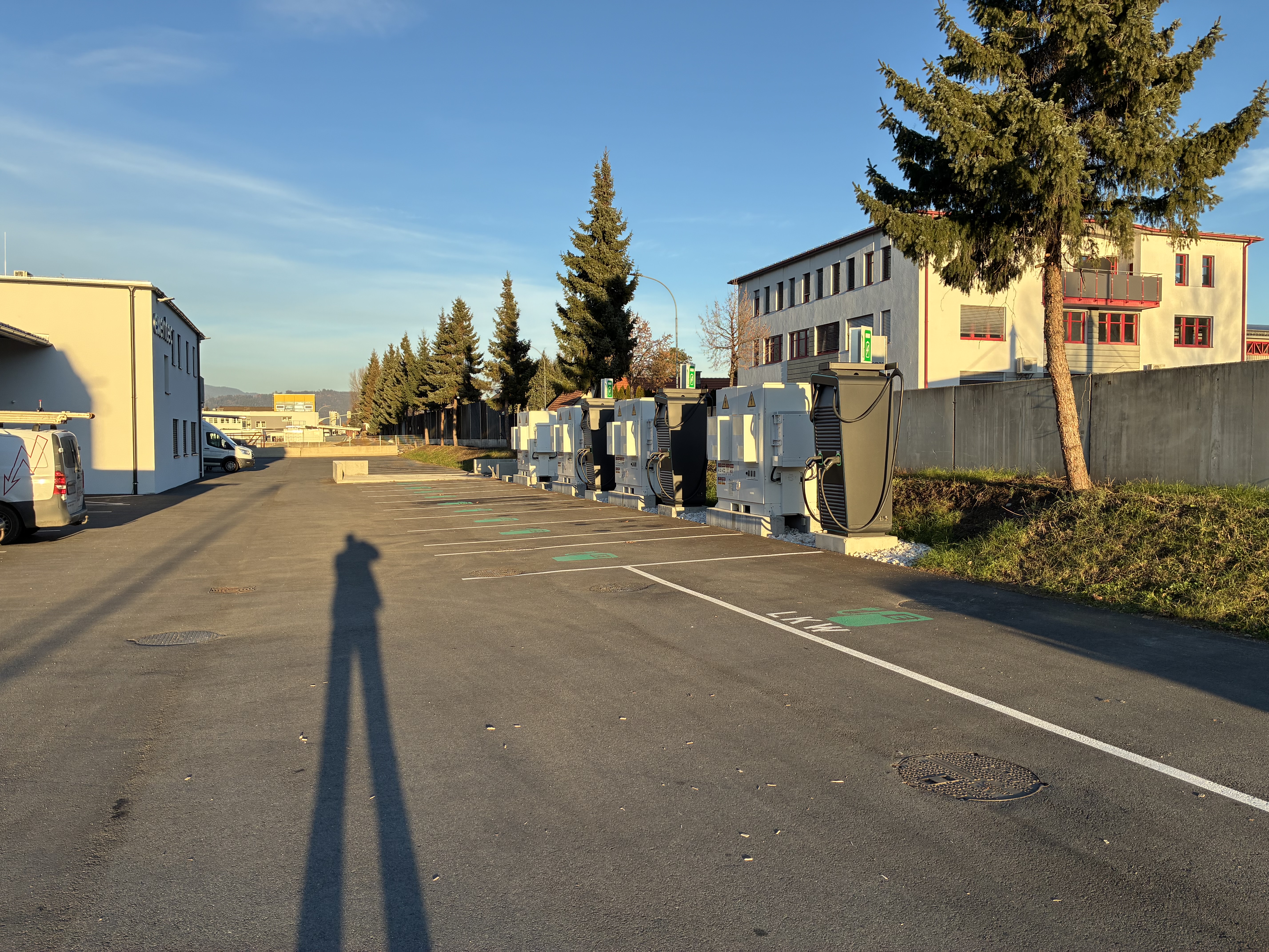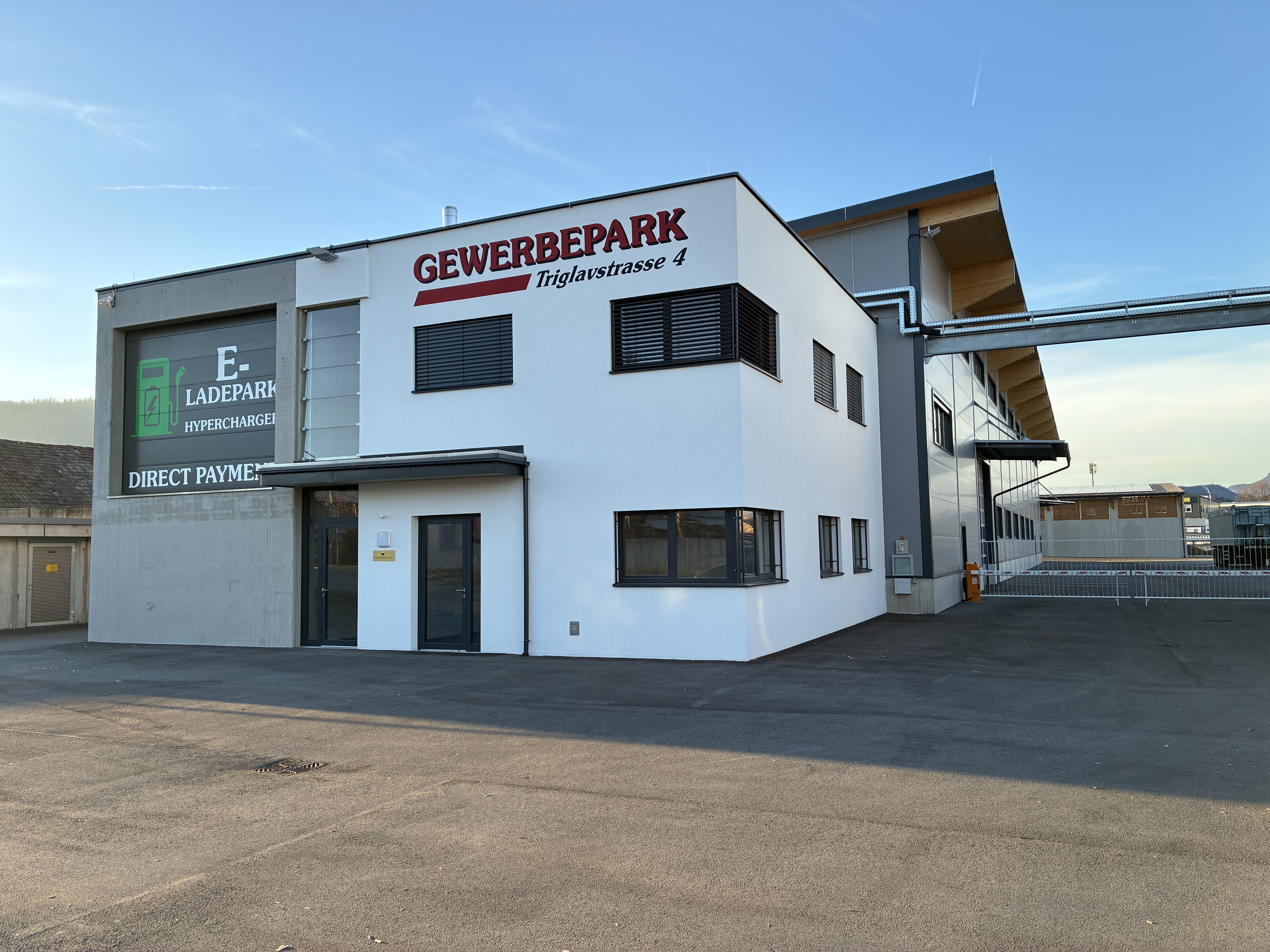 Fußbodenheizung, außenliegendes betoniertes Gasflaschenlager, Stromversorgung durch 550 kWp Photovoltaikanlage mit 1 Megawatt Speicher und 1 Megawatt Bezugsmöglichkeit, Heizung mit Biomasse, öffentlicher Ladepark mit 3 Stk. 300 kW Superchargern
